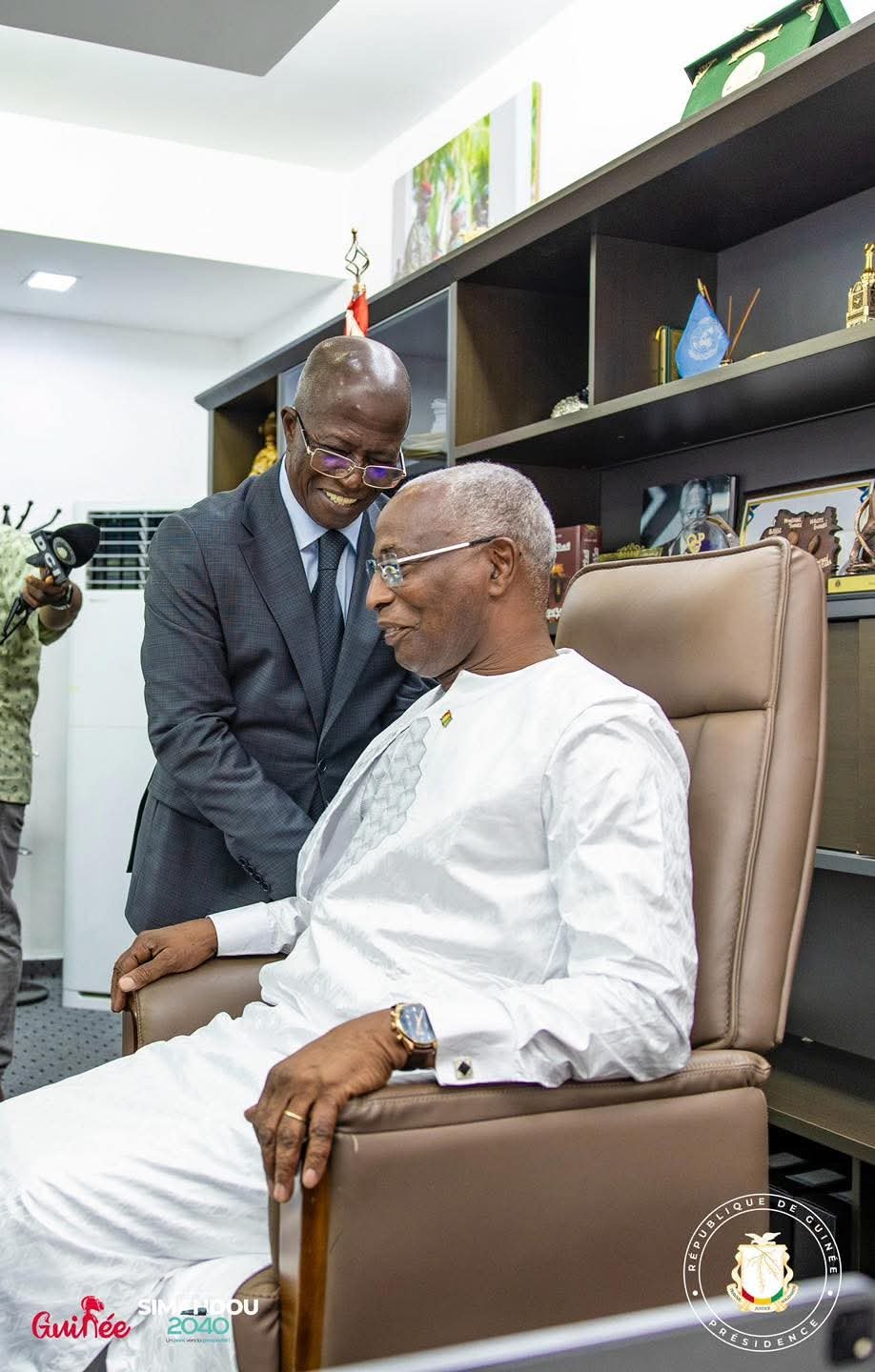 La cérémonie officielle d’installation de M. Amadou Oury BAH, Premier ministre, Chef du Gouvernement, s’est tenue ce mercredi 28 janvier 2026 au Palais de la Colombe, sous la présidence du Ministre Secrétaire Général de la Présidence, le Général Amara CAMARA, et du Ministre Directeur de Cabinet de la Présidence, M. Djiba DIAKITÉ. Cet acte solennel marque officiellement l’entrée en fonction du Chef du Gouvernement et l’ouverture d’une nouvelle phase de l’action gouvernementale au service du peuple souverain de Guinée.